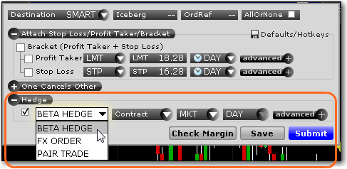 给原始定单附加一个对冲定单。从Beta、外汇、或成对交易对冲中选取。对冲定单将在母定单被执行后发送。