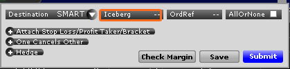 点击冰山区域并输入定单的部分数量。这是将在市场上显示的数量。