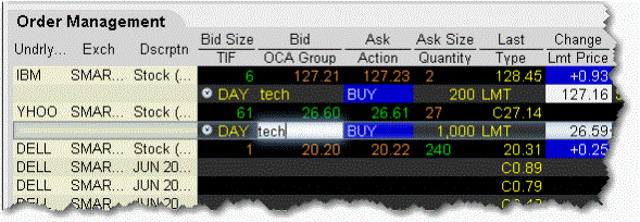 - 创建了组中所有定单后,点击发送页面上所有定单(在交易 > 发送 菜单)发送OCA定单。