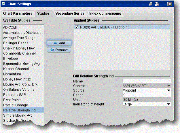 2. 选取相对强弱指标(Relative Strength Ind) 和添加该指标。