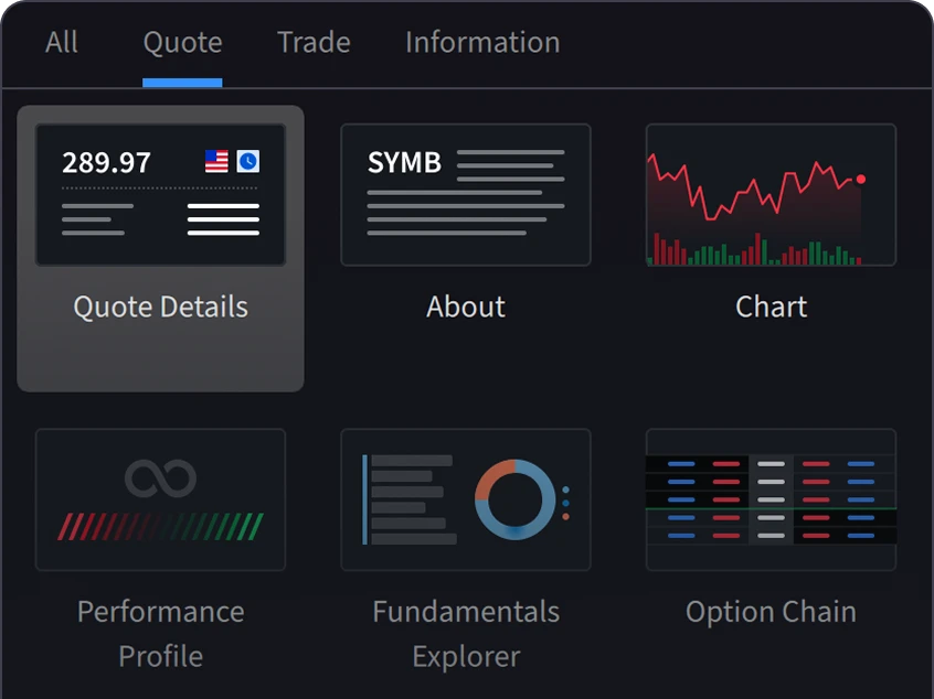 使用高级图表、筛选器、二级数据、期权工具和实时洞察进行操作。