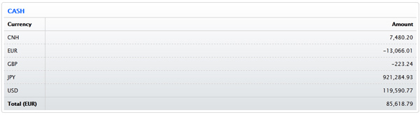 For example, here is the Positions tab for an account with cash in several currencies.