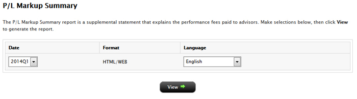 This report shows a summary of client profit and loss (P/L) used to determine quarterly and annual performance fees paid to an Advisor for a single client account or for all client accounts.